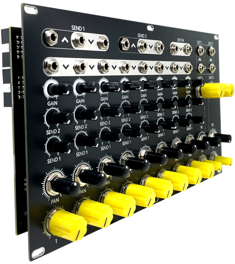 It´s an 8 channel mono to stereo mixer with two mono sends, two stereo returns, panning, external stereo or mono to stereo input, direct & cue outs (expander) and plenty of level control.