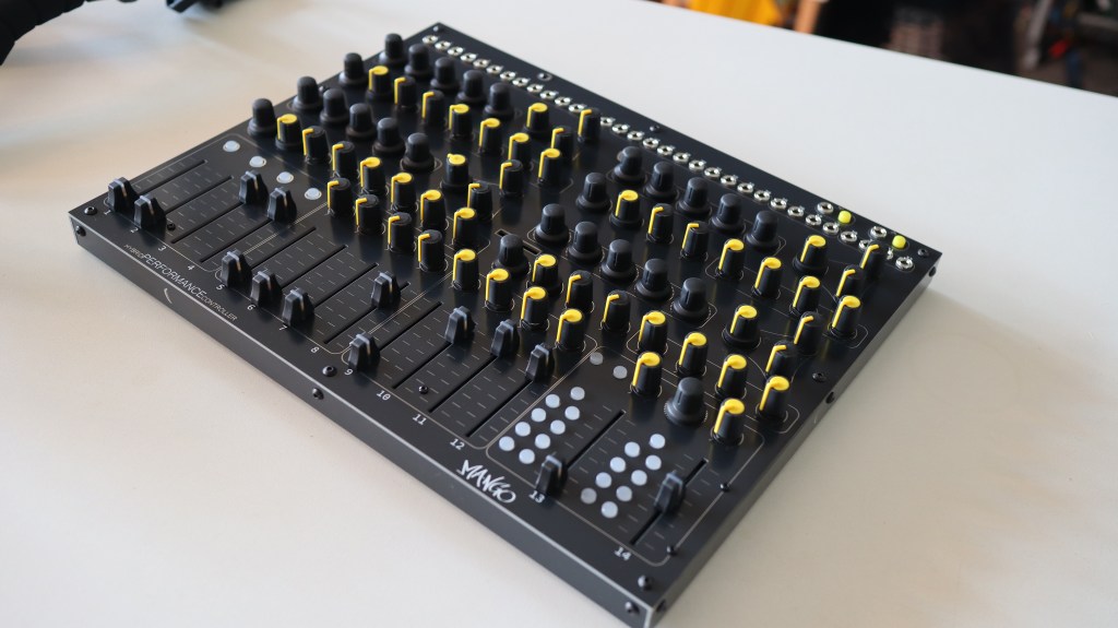 Mango is a hybrid MIDI & CV controller for desktop use, following the controller product line of "Coco", "Kiwi" & "Lemon".