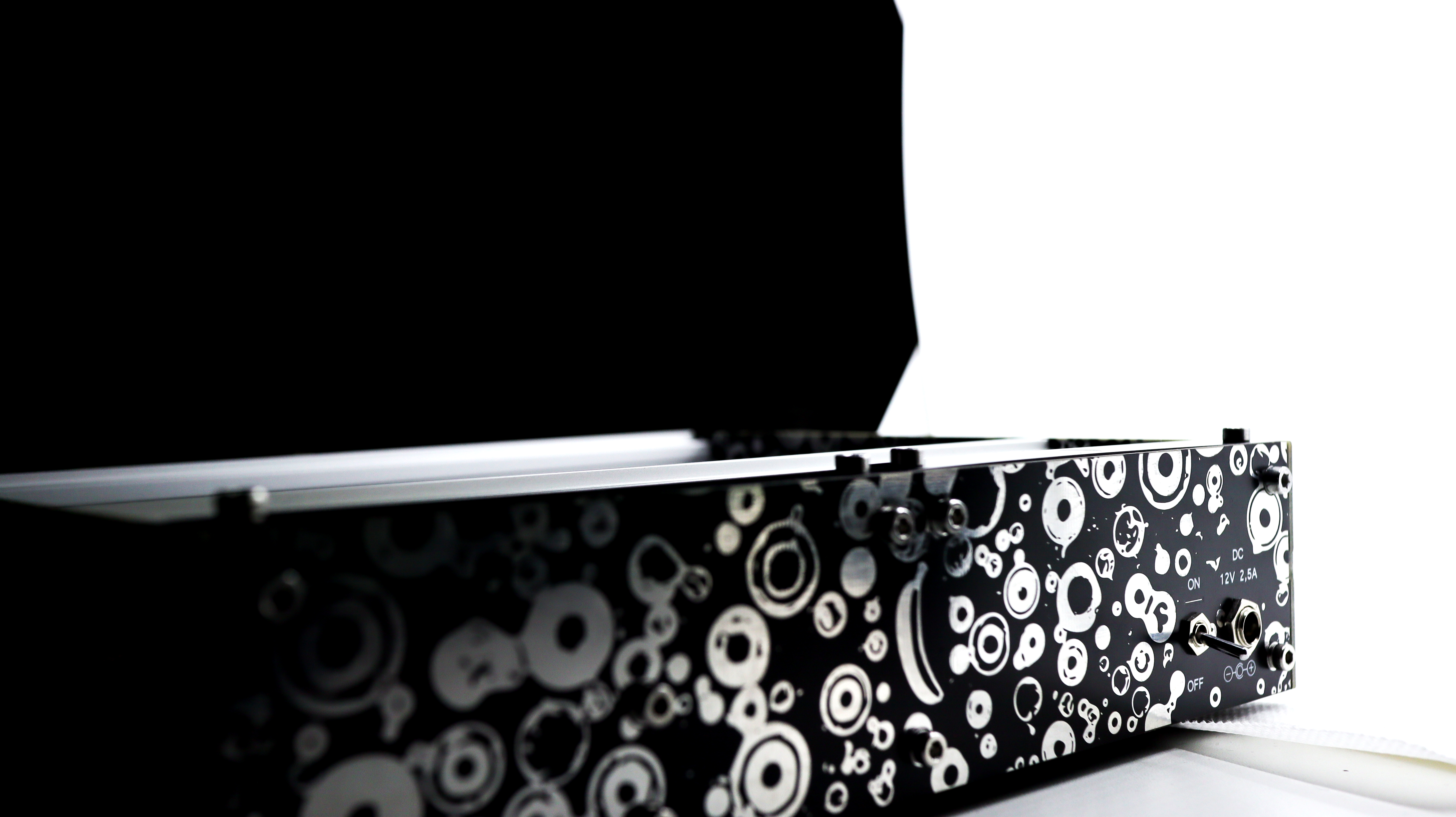 It´s made out of 1,6mm PCB material with silver metallic graphics and screwed together with12mm blocks and M3 screws.