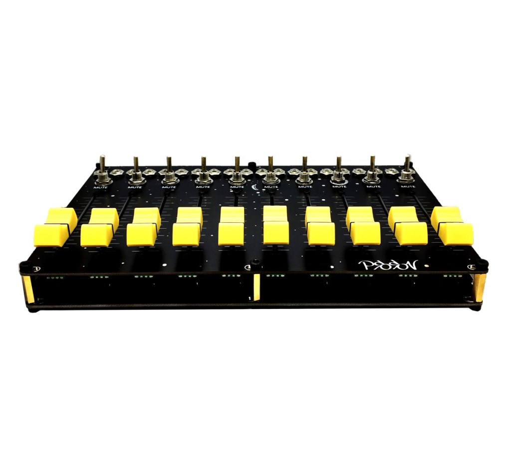 It looks and feels like a mixer, but it’s not mixing signals! You can call it a passive faderbank aswell.