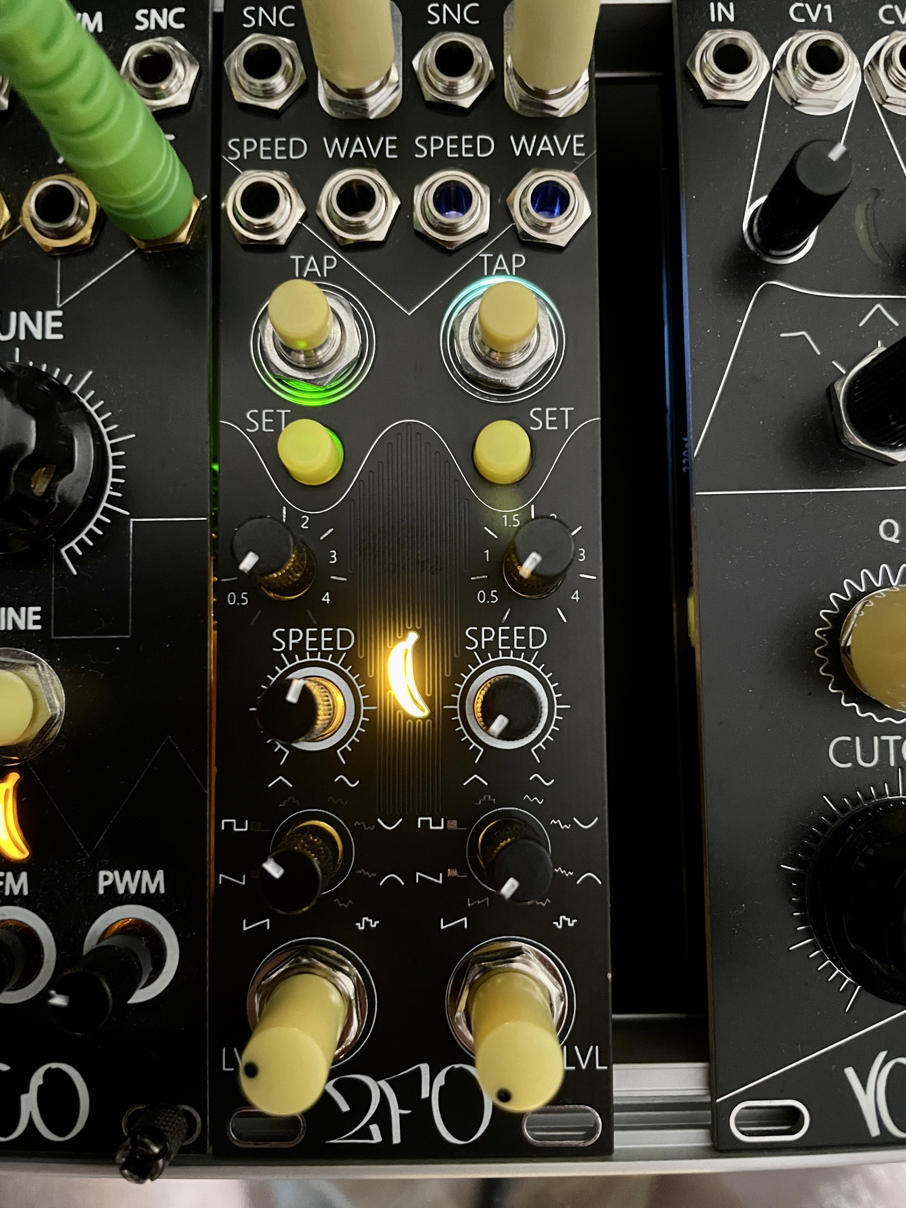 CV ins for Sync, Speed & Waveform. Accepting -5 / +5V while the dedicated pots act as offset.