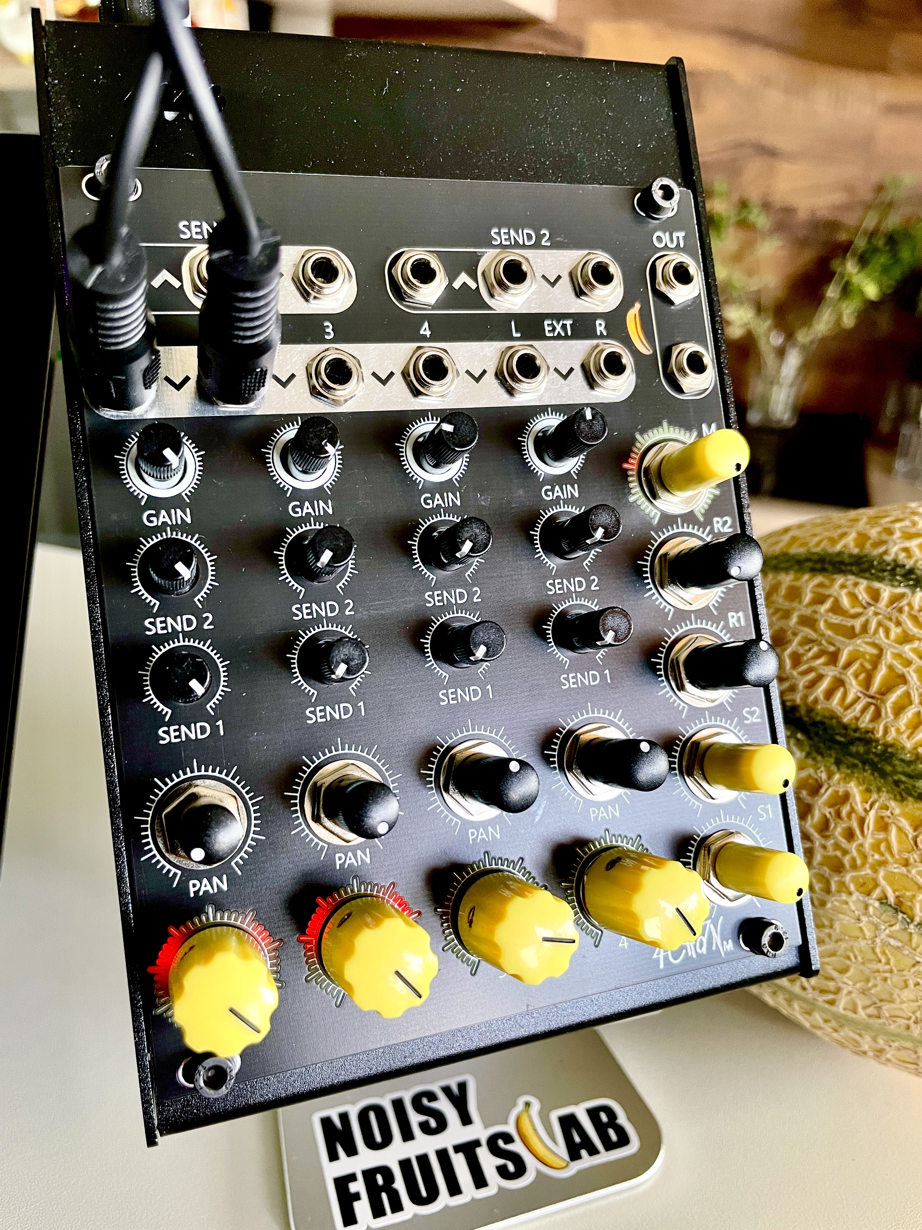 It´s a 4 channel mono to stereo mixer with two mono sends, two stereo returns, panning, external stereo or mono to stereo input and plenty of level control.