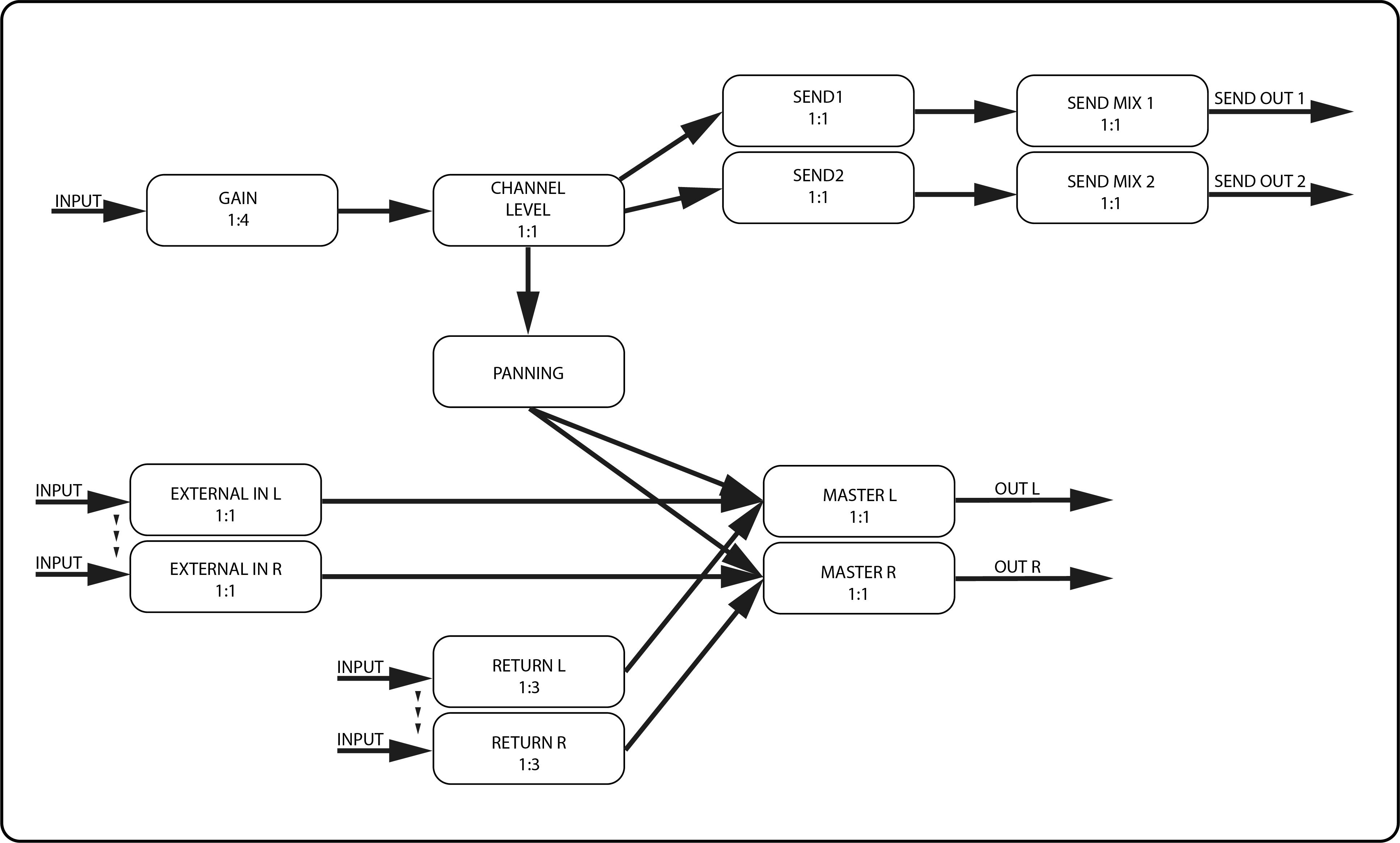 The overlay and signal flow is leaned on common line mixers without the EQ section.
