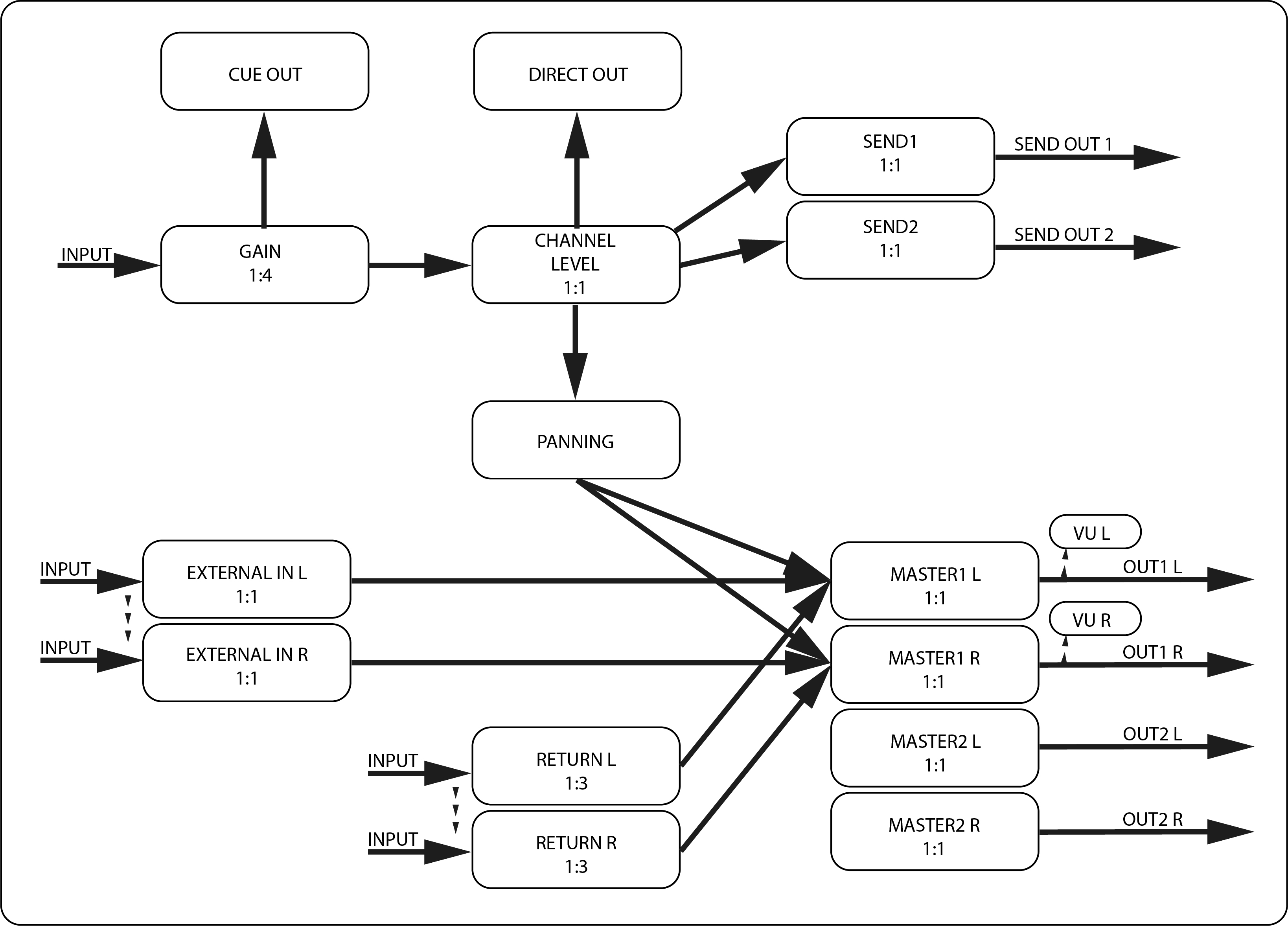 The overlay and signal flow is leaned on common line mixers without the EQ section.