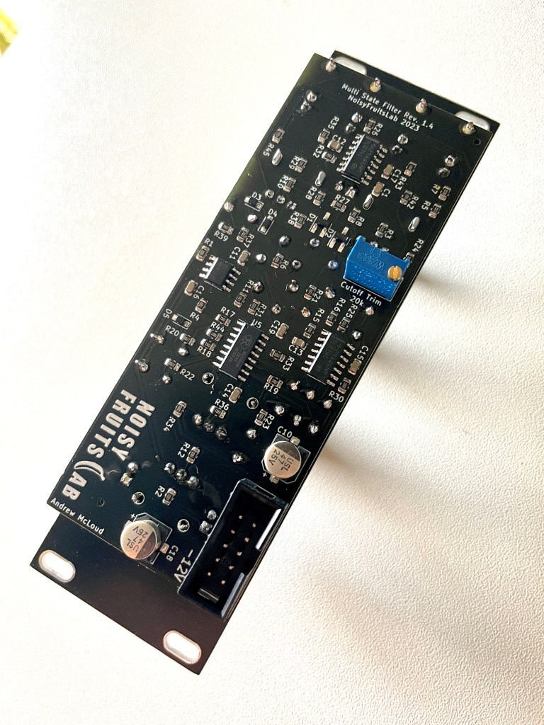 3 pole low pass2 pole band pass3 pole high pass 2 CV ins for cutoff control -5V/+5V LED indication around the cutoff pot.